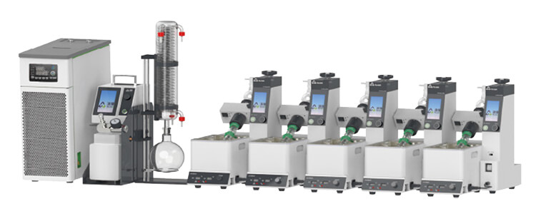 功能丰富、方便使用 阵列旋转蒸发仪支持真空度快速锁定、定时蒸发、正反交替旋转等智能化功能,给实验工作带来了极大的便利。