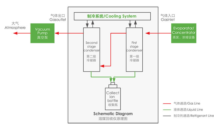 高效冷凝、减少污染 阵列旋转蒸发仪可以选择 eSR 系列溶媒回收仪用于溶剂蒸汽冷凝回收,溶媒回收仪的多级直接冷凝技术可以将溶剂蒸汽高效的液化收集,减少溶剂蒸汽排放。eSR 系列溶媒回收不需要添加冷却循环液,也不需要连接玻璃冷凝器,开机即用,操作维护更简单。